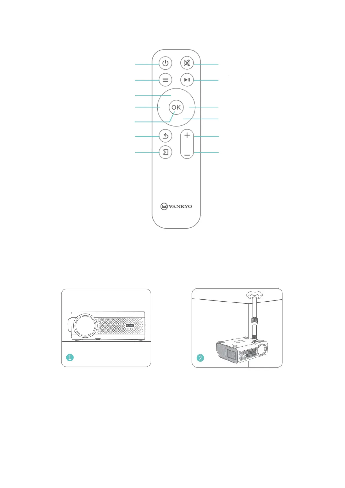 1. A projektor közvetlenül a fal/képernyő előtt van középre állítva, de nem döntött