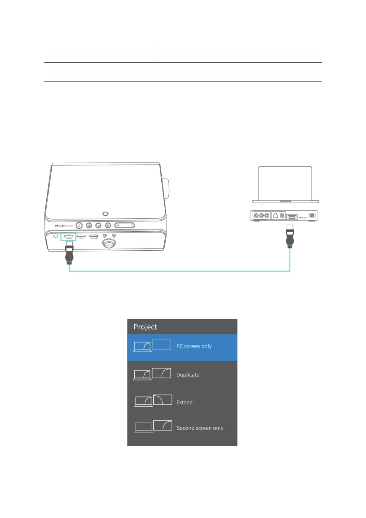 1. lépés: Kapcsolja be a projektort, és csatlakoztassa készülékét a projektor HDMI-
