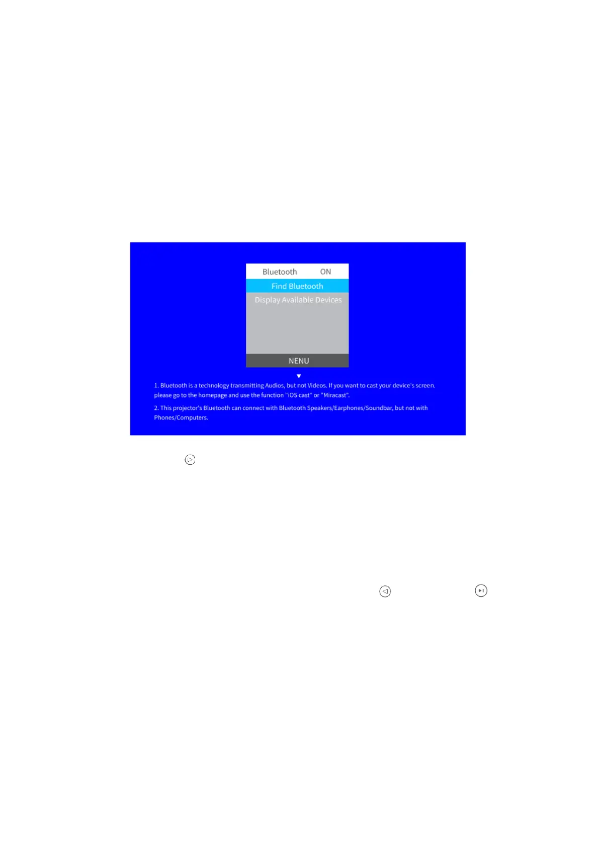 • Nyomja meg a gombot a kivetítő Bluetooth bekapcsolásához és a Bluetooth-