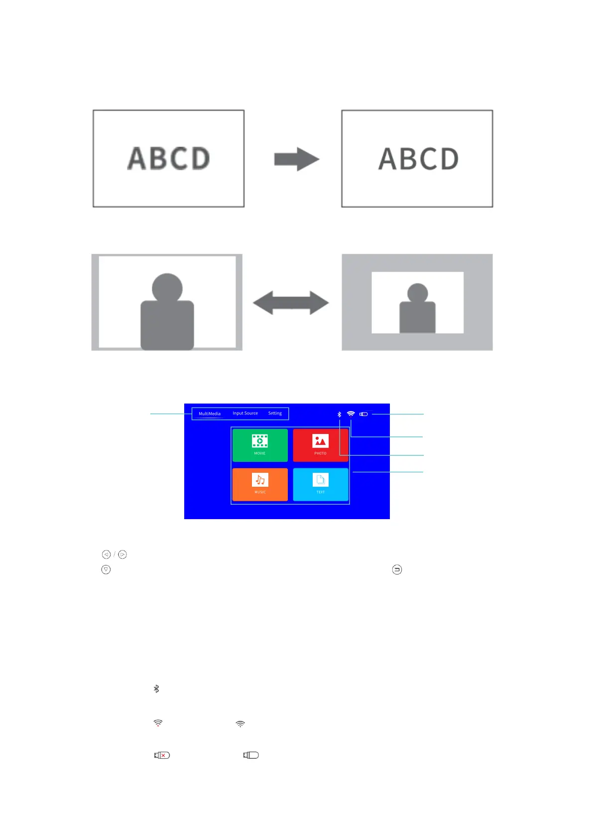 • Multimedia page display file categories of Multimedia Input (typically for a USB