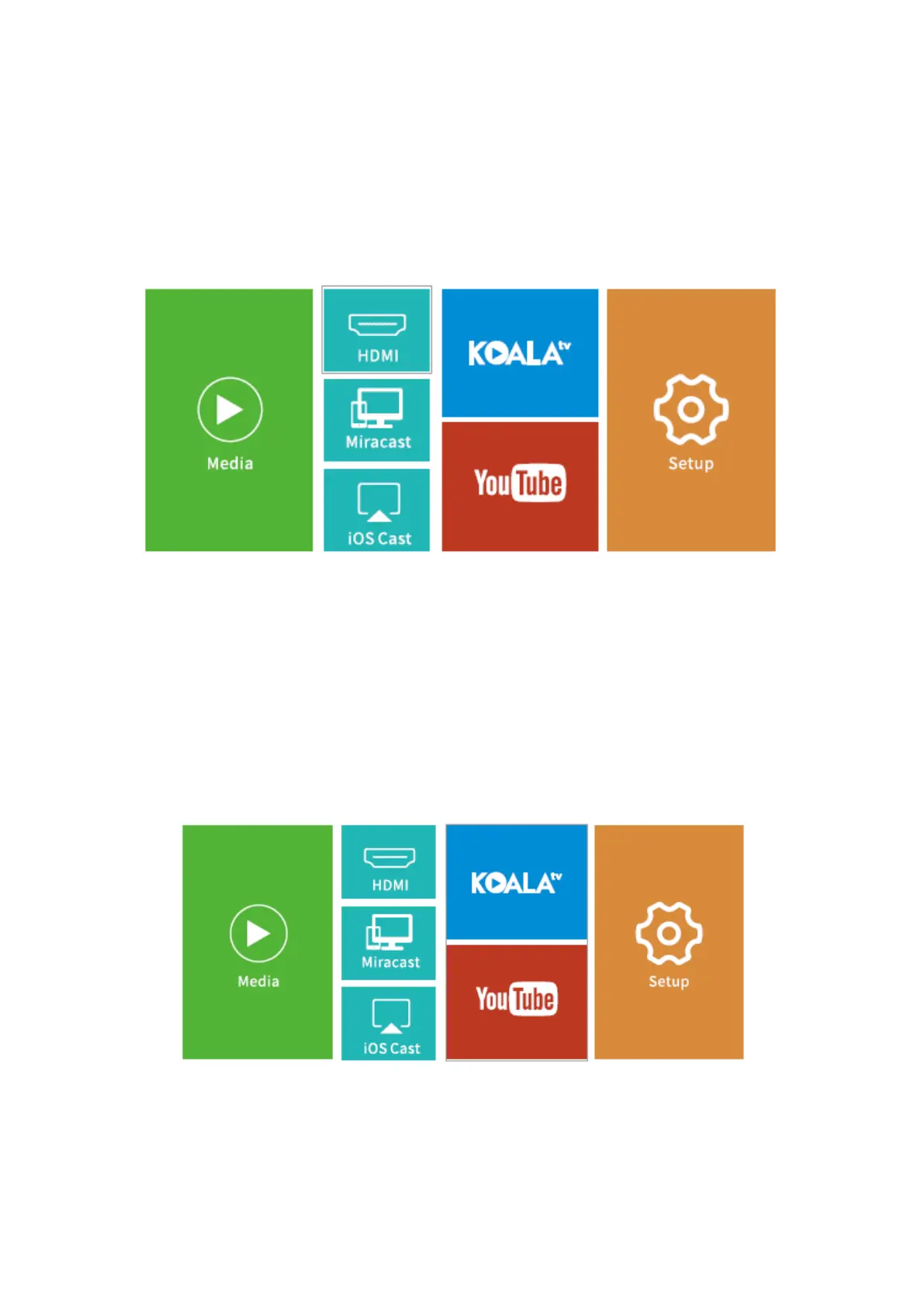 2. Prejdite na domovskú stránku a potom výberom HDMI premietnite obsah zo svojho