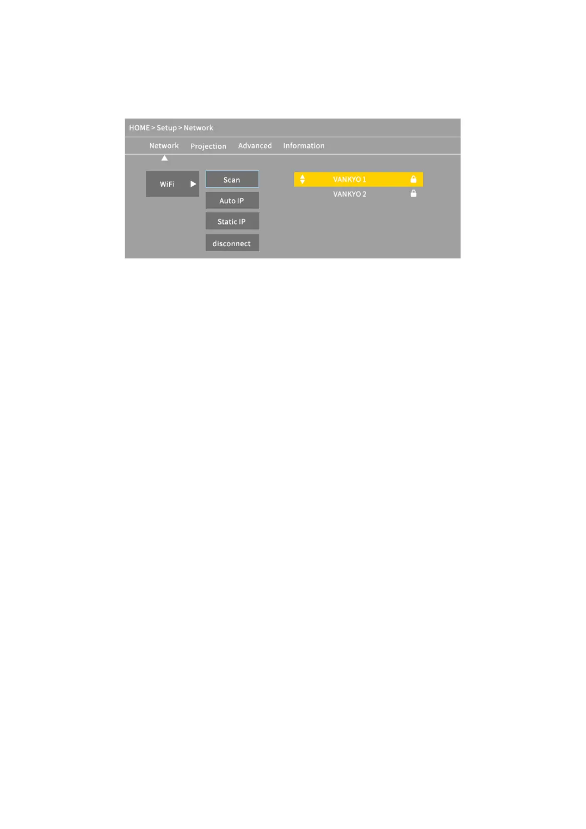 2. Nyomja meg a Fel/Le gombot a Wi-Fi kiválasztásához, majd nyomja meg az Ok gombot