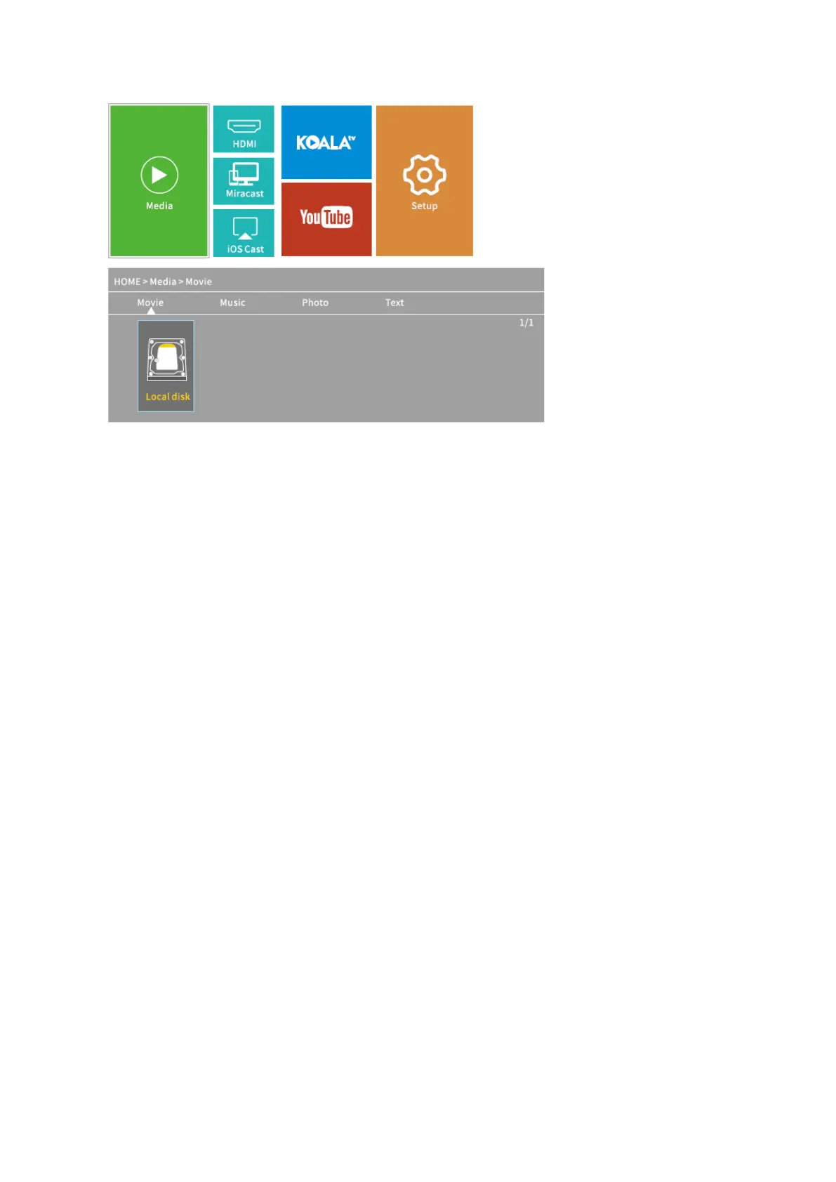 • Um ein Video abzuspielen, wählen Sie Film (Movie), suchen Sie Ihre Videodatei