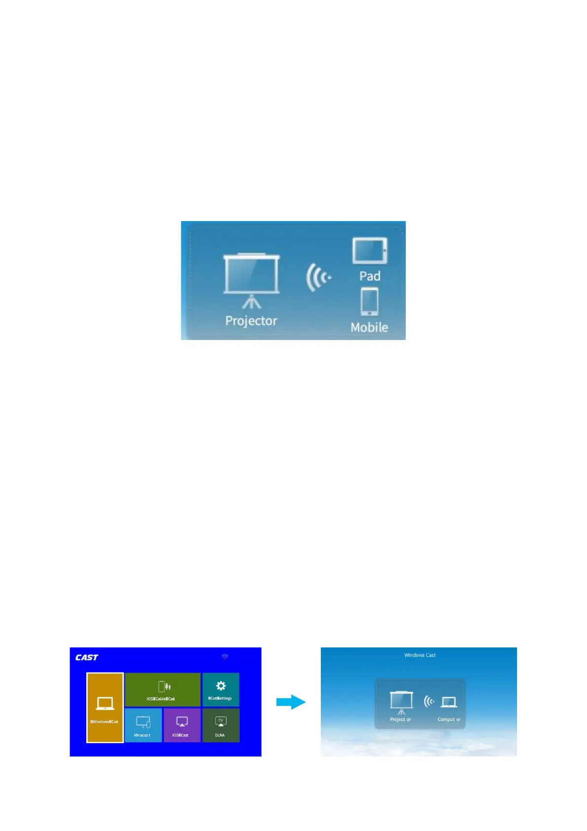 1. Android / Pad eszköz és a kivetítő összekapcsolása Wi-Fi-kijelző technológián