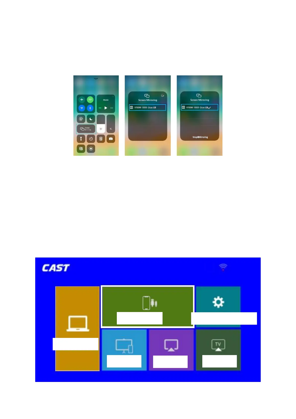 6. Wählen Sie V700W-XXXX-(icast) aus der Suchliste. Die Inhalte auf Ihrem iOS-Gerät