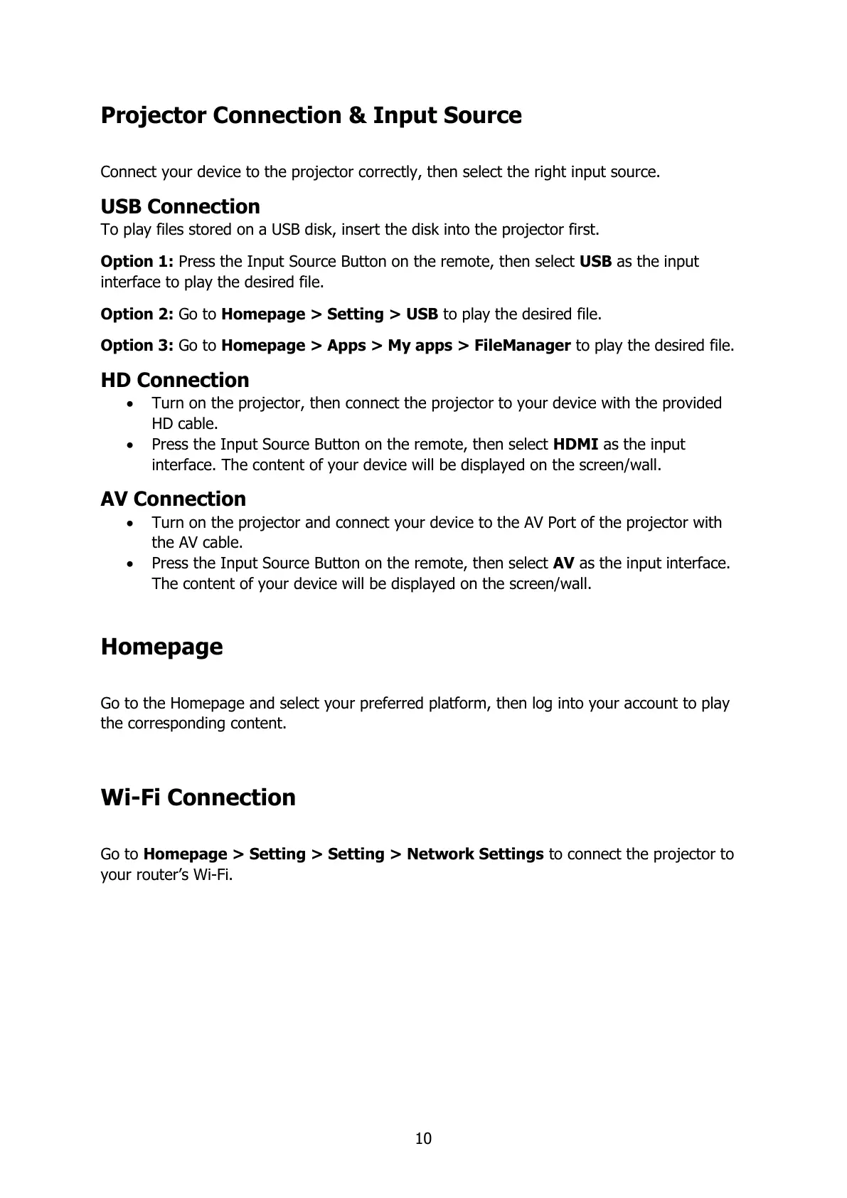Projector Connection & Input Source