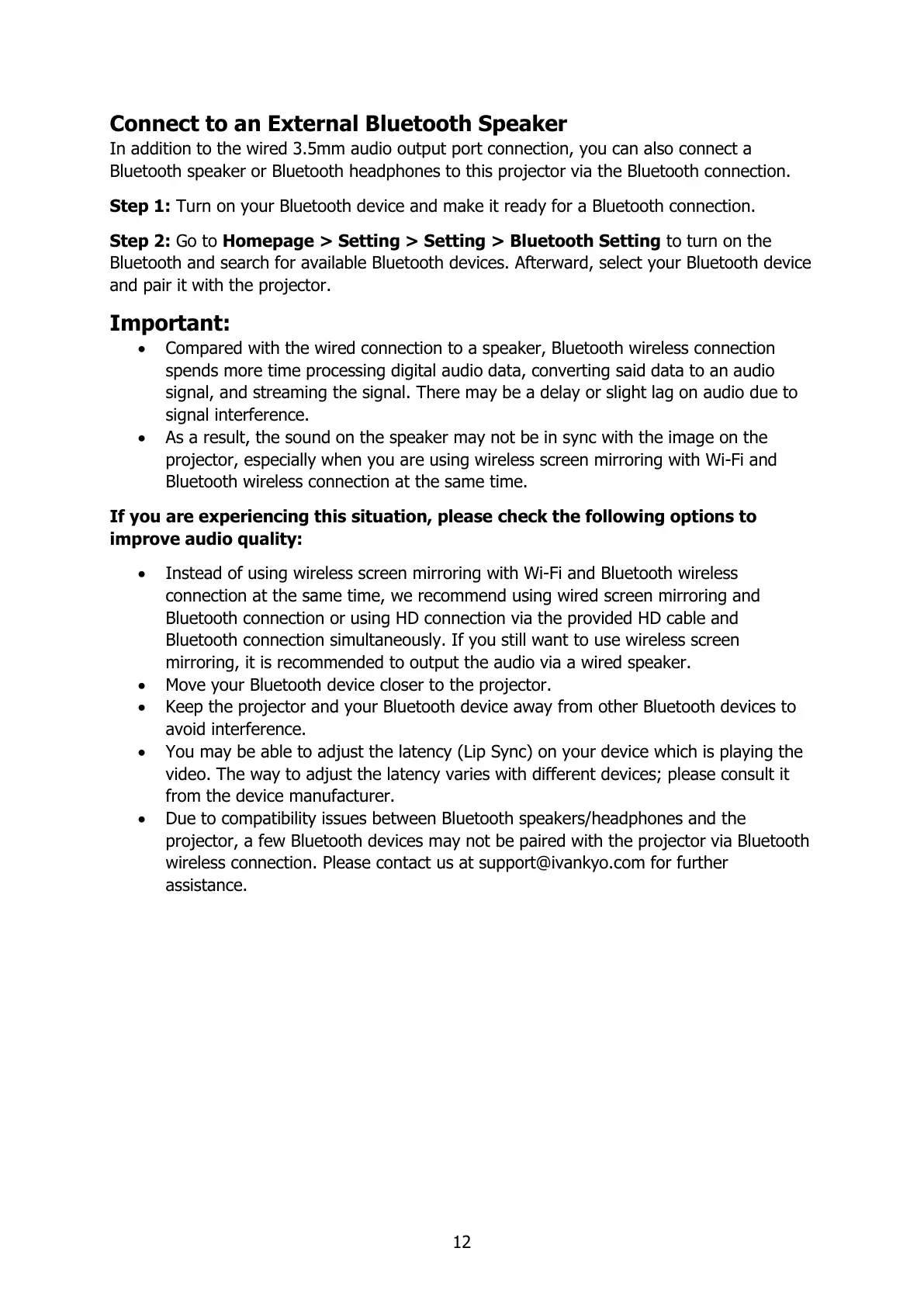 Bluetooth speaker or Bluetooth headphones to this projector via the Bluetooth connection.