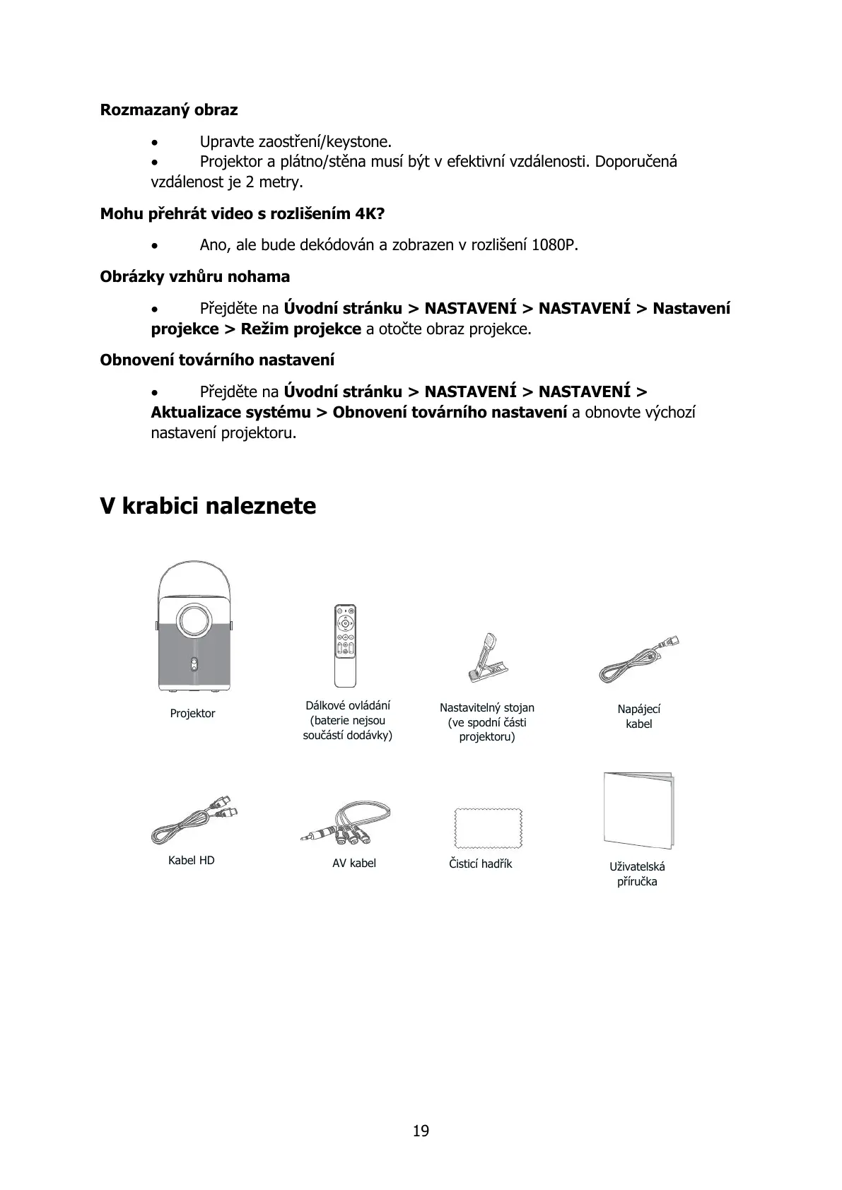 nastavení projektoru.