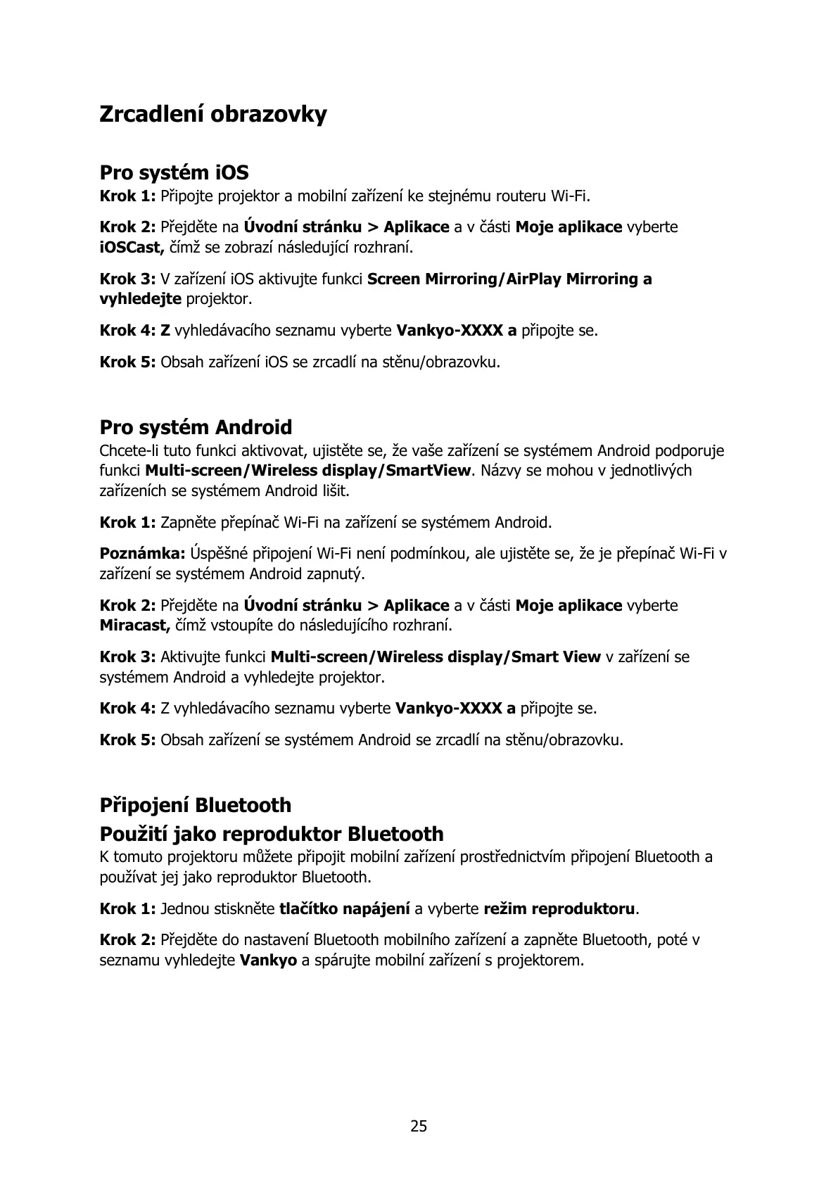 seznamu vyhledejte Vankyo a spárujte mobilní zařízení s projektorem.