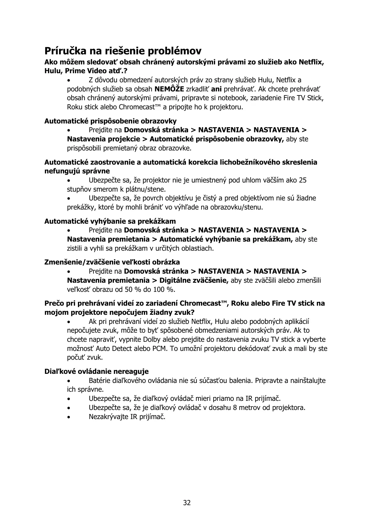 Nastavenia premietania > Automatické vyhýbanie sa prekážkam, aby ste