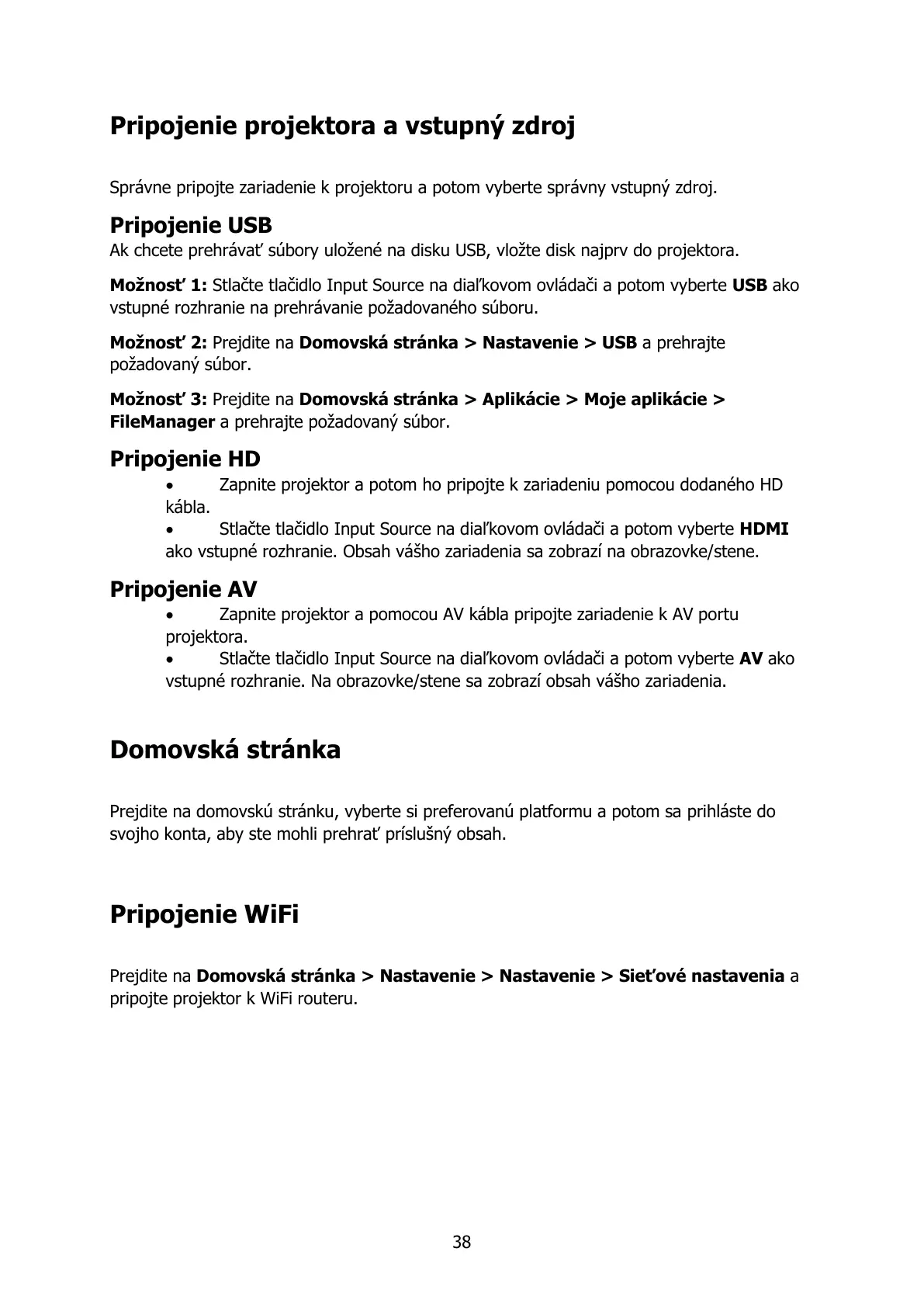 Pripojenie projektora a vstupný zdroj