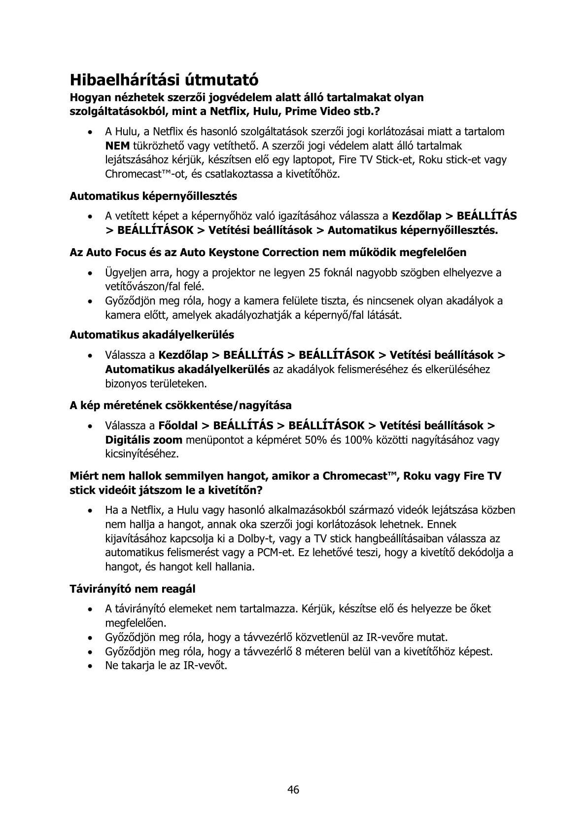 Chromecast™-ot, és csatlakoztassa a kivetítőhöz.