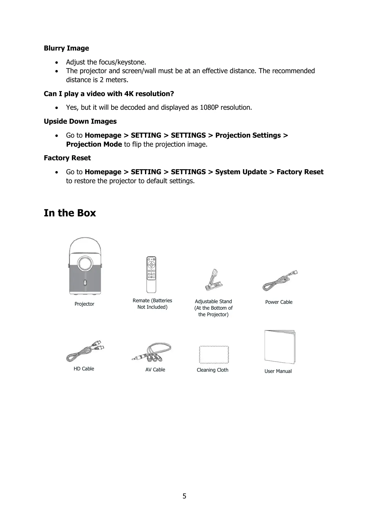 Go to Homepage > SETTING > SETTINGS > Projection Settings >