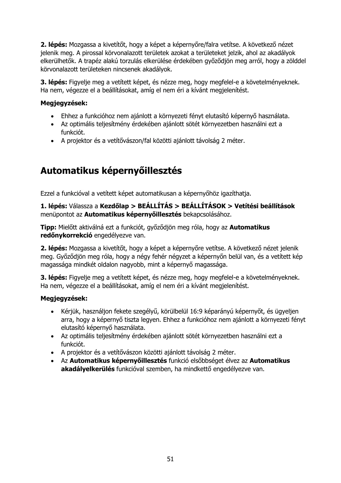 Ezzel a funkcióval a vetített képet automatikusan a képernyőhöz igazíthatja.