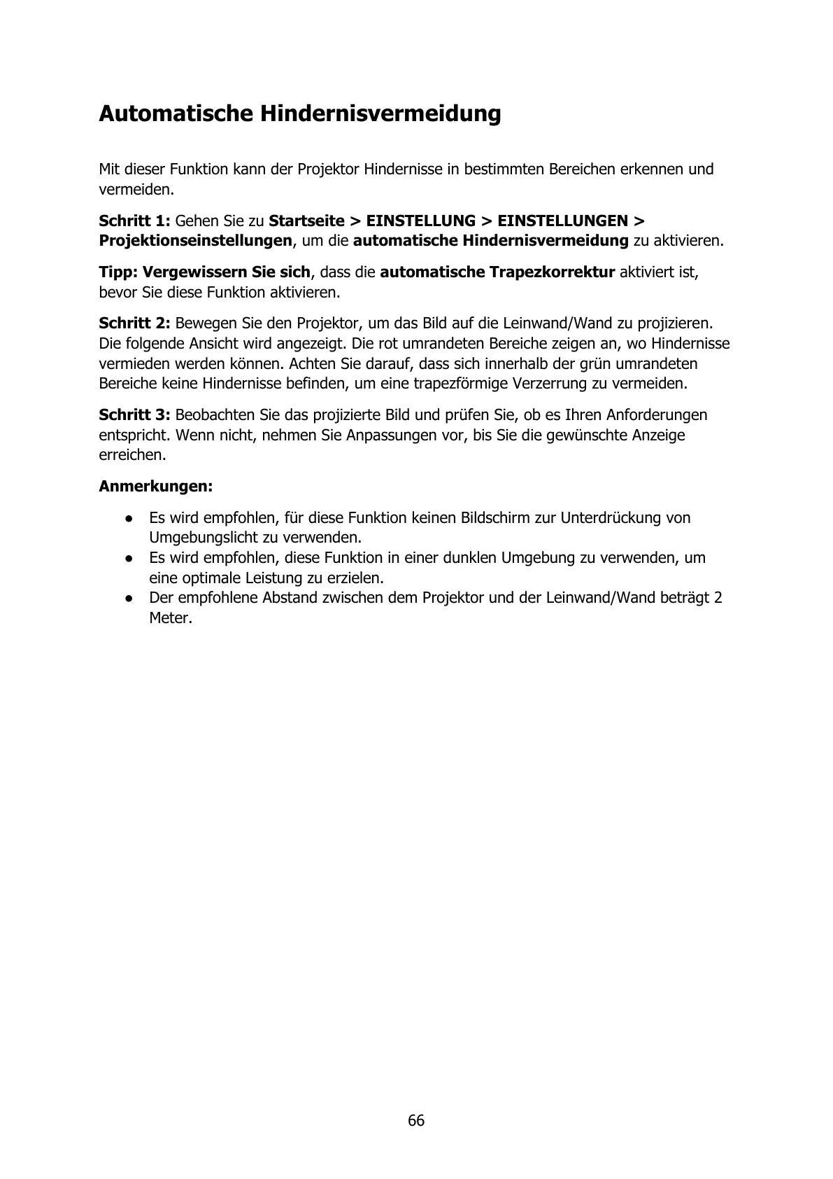 Projektionseinstellungen, um die automatische Hindernisvermeidung zu aktivieren.