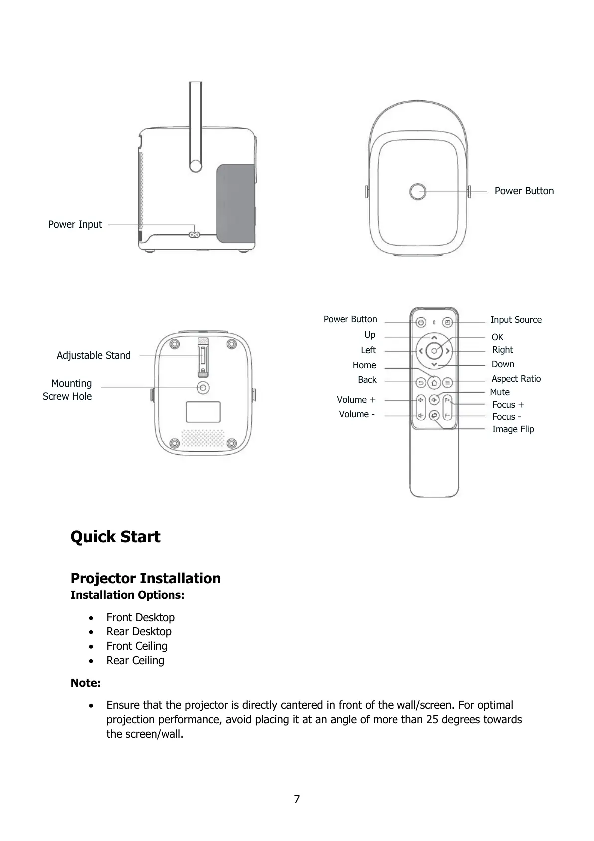 projection performance, avoid placing it at an angle of more than 25 degrees towards