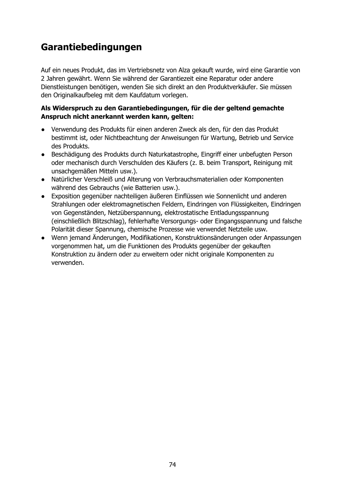Auf ein neues Produkt, das im Vertriebsnetz von Alza gekauft wurde, wird eine Garantie von