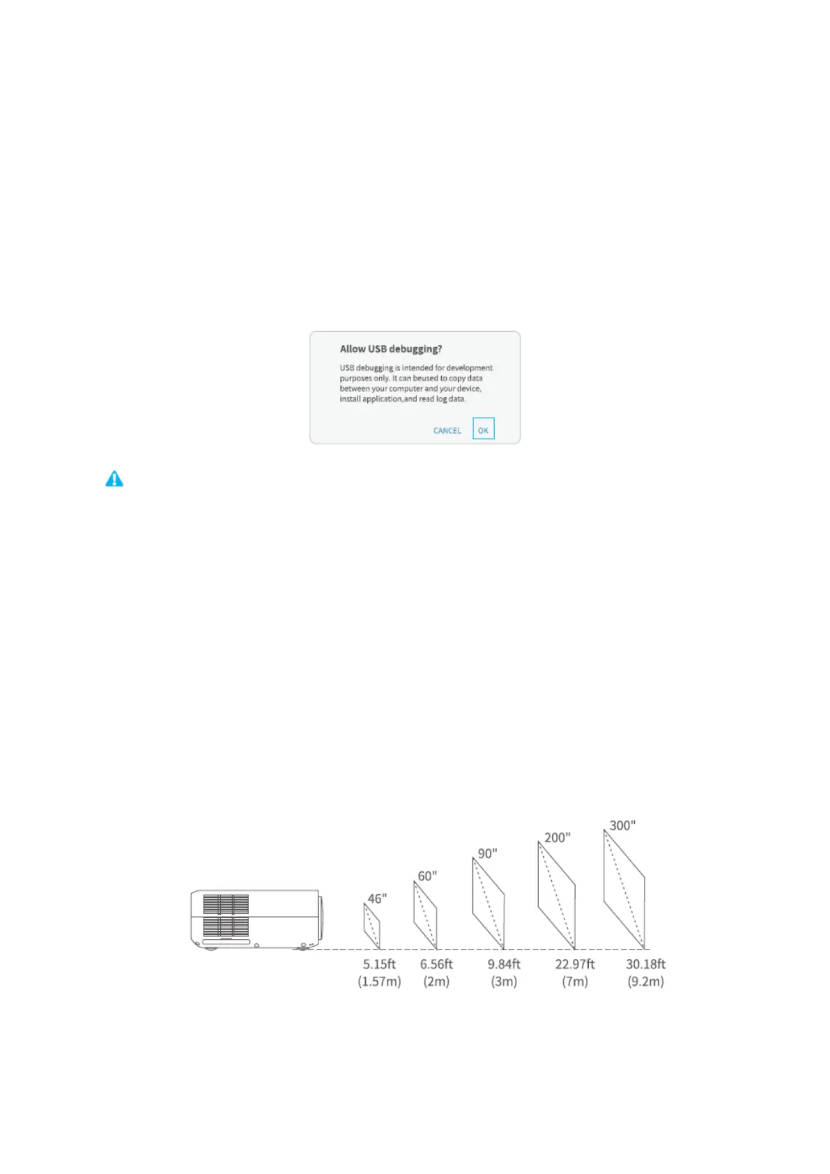 Az ajánlott vetítővászon körülbelül 90 hüvelyk és a vetítési távolság pedig körülbelül 9,84