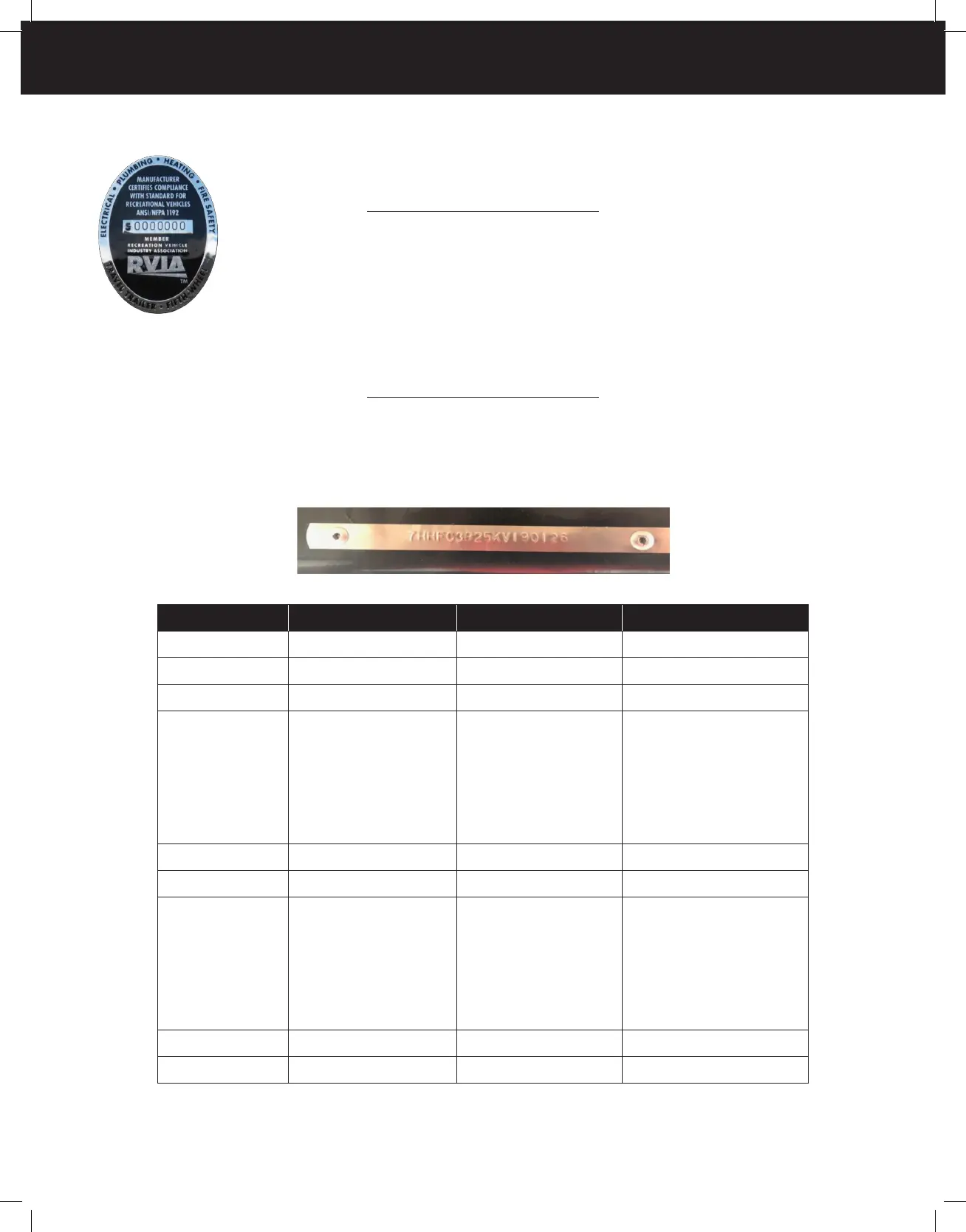 to the pin box. It is also listed on the Federal Certification Label. A breakdown of a typical Vanleigh RV VIN is shown