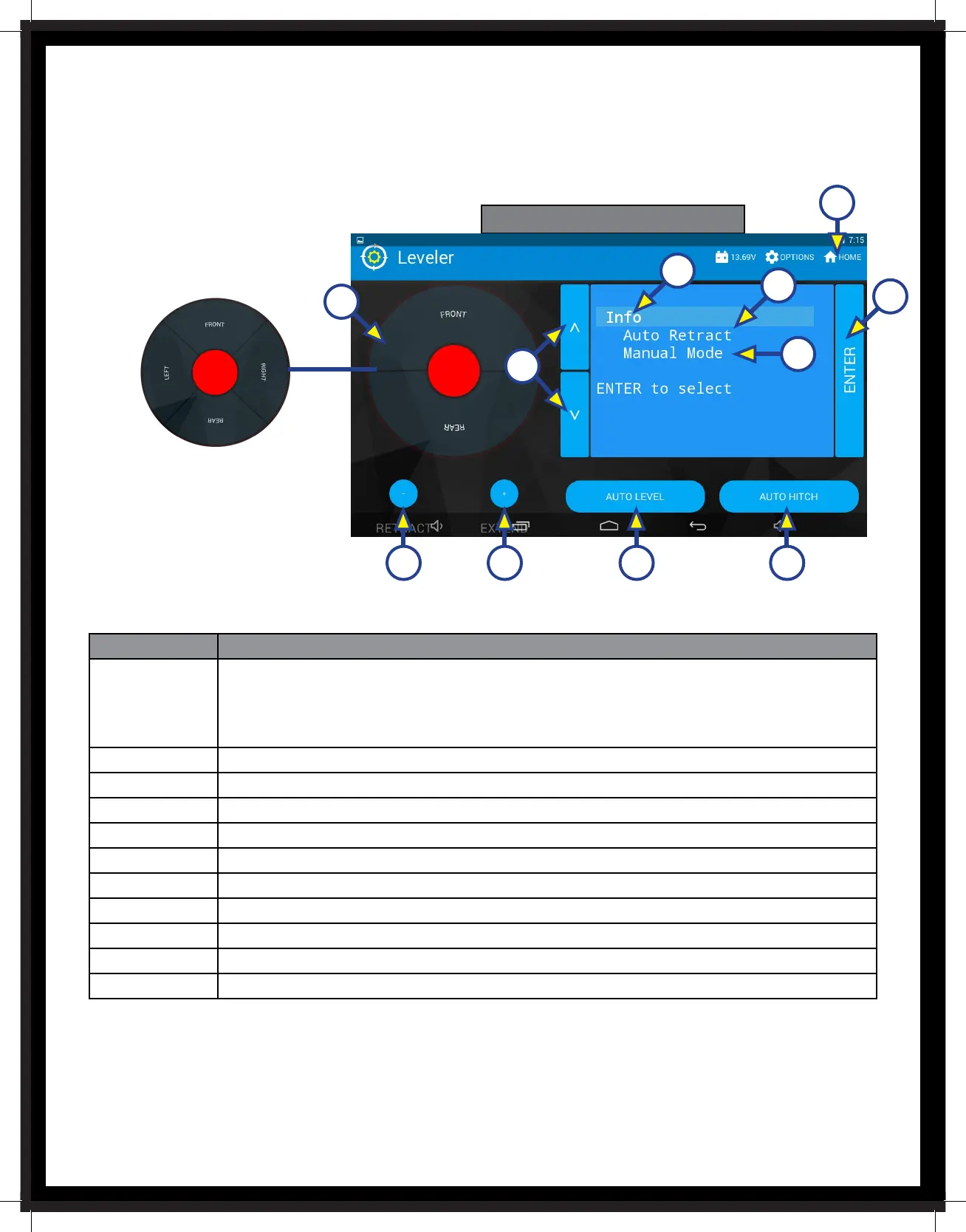 D Auto Retract - Enters Auto Retract mode. Choose to retract "All Jacks" or "Rear Jacks."