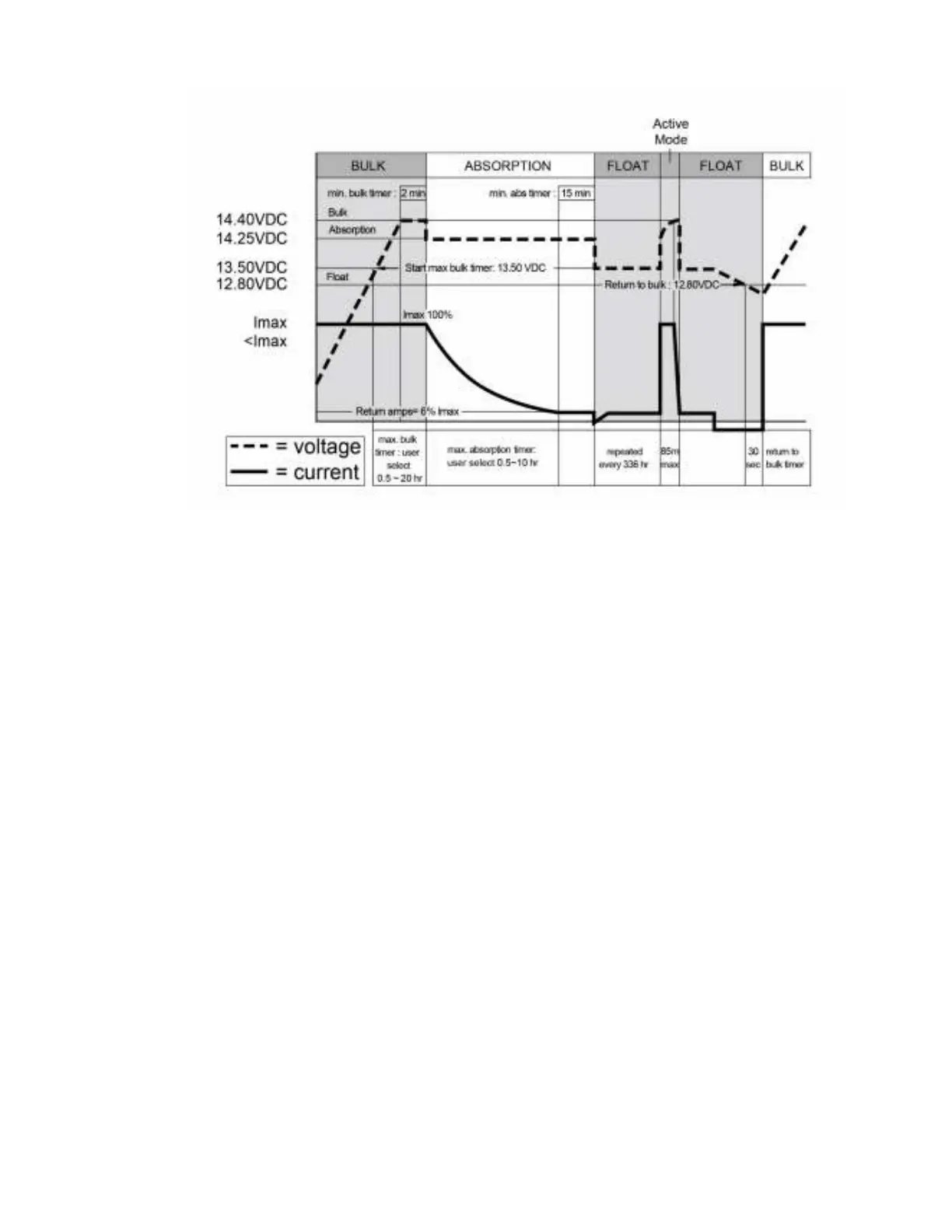 (determined by the Battery Type selection) then switches to absorption charging.