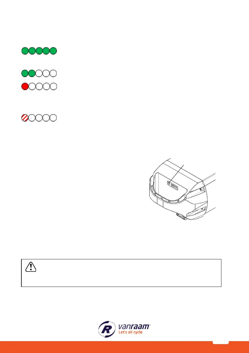 The level of charge in the battery is given by five LED lights: four of these are green, the