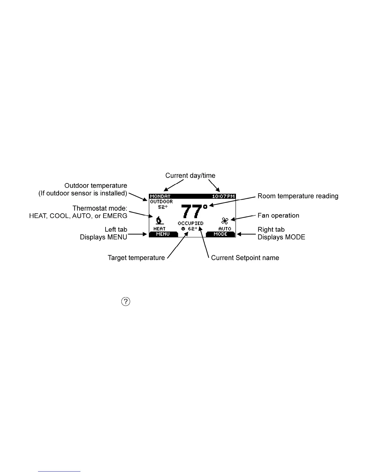 The thermostat’s HELP button gives you a quick reminder of how to navigate through the