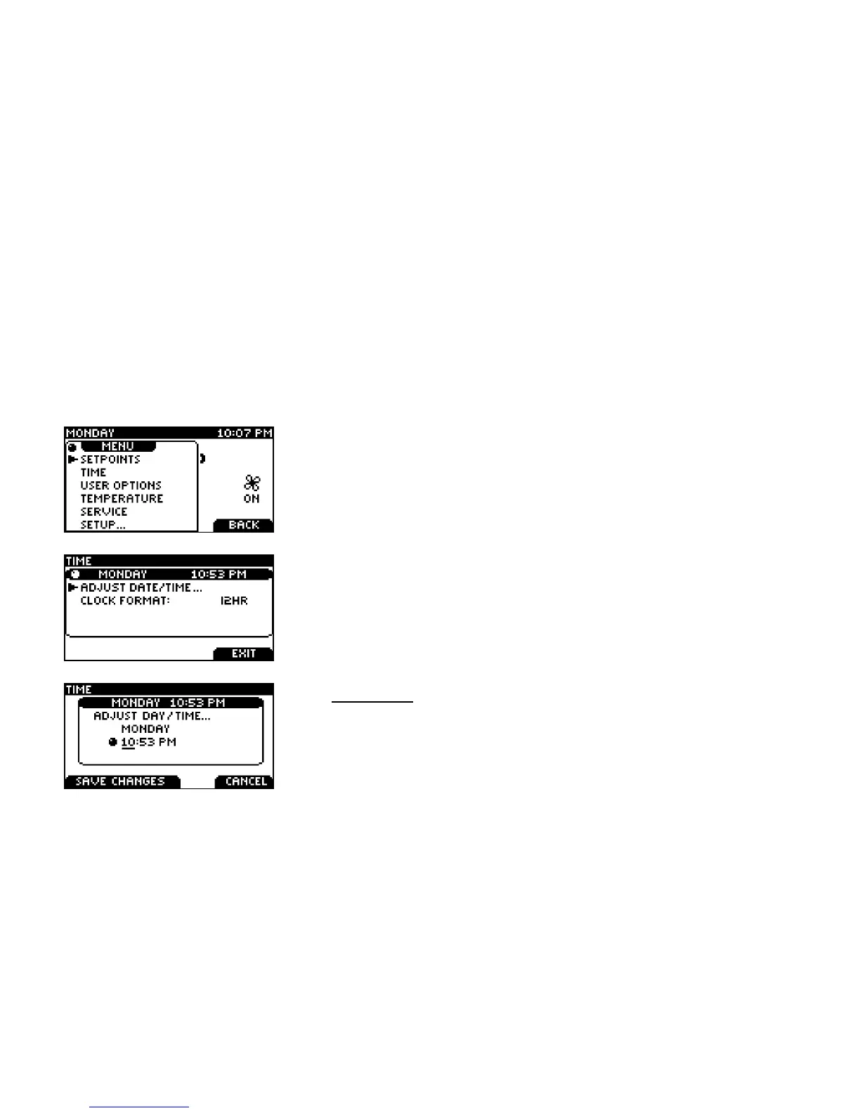 Setting the clock is not necessary when connected to the Vantage System. The thermostat will get
