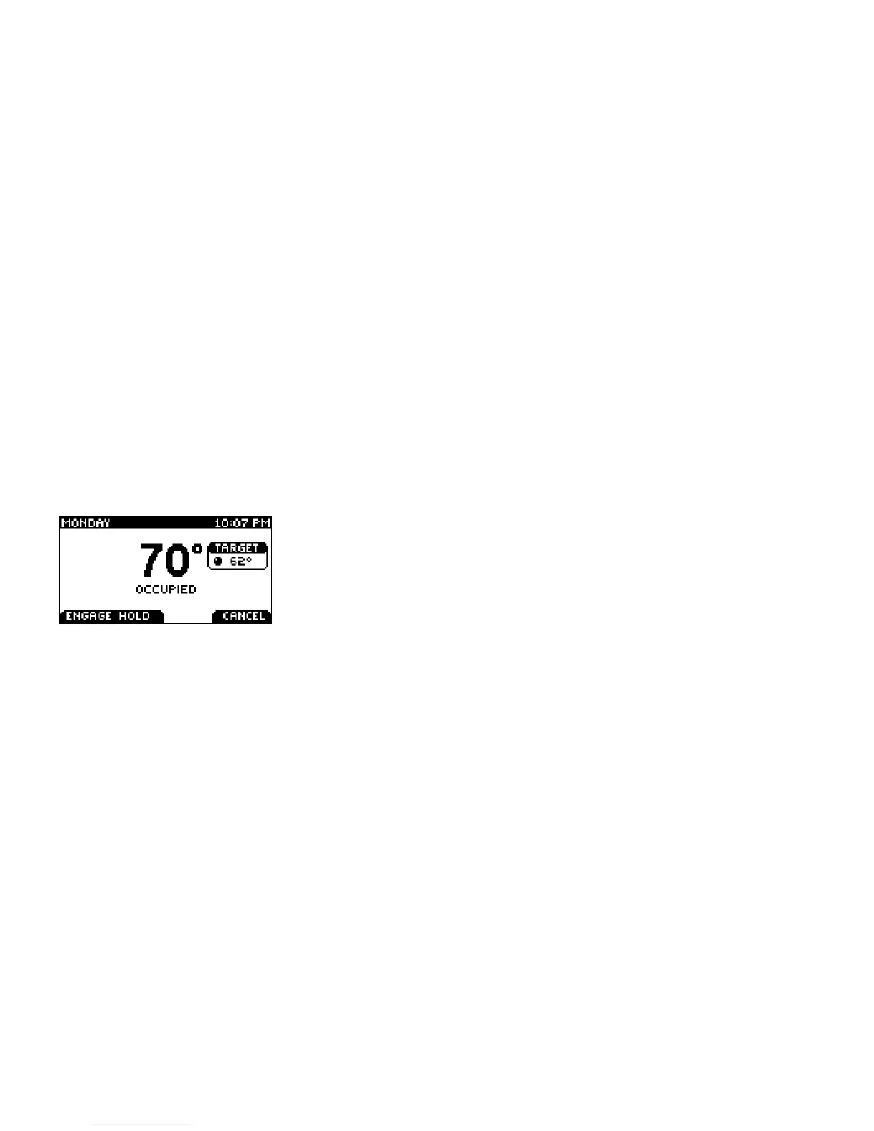 hold. The thermostat will hold the TARGET temperature permanently and display HOLD.