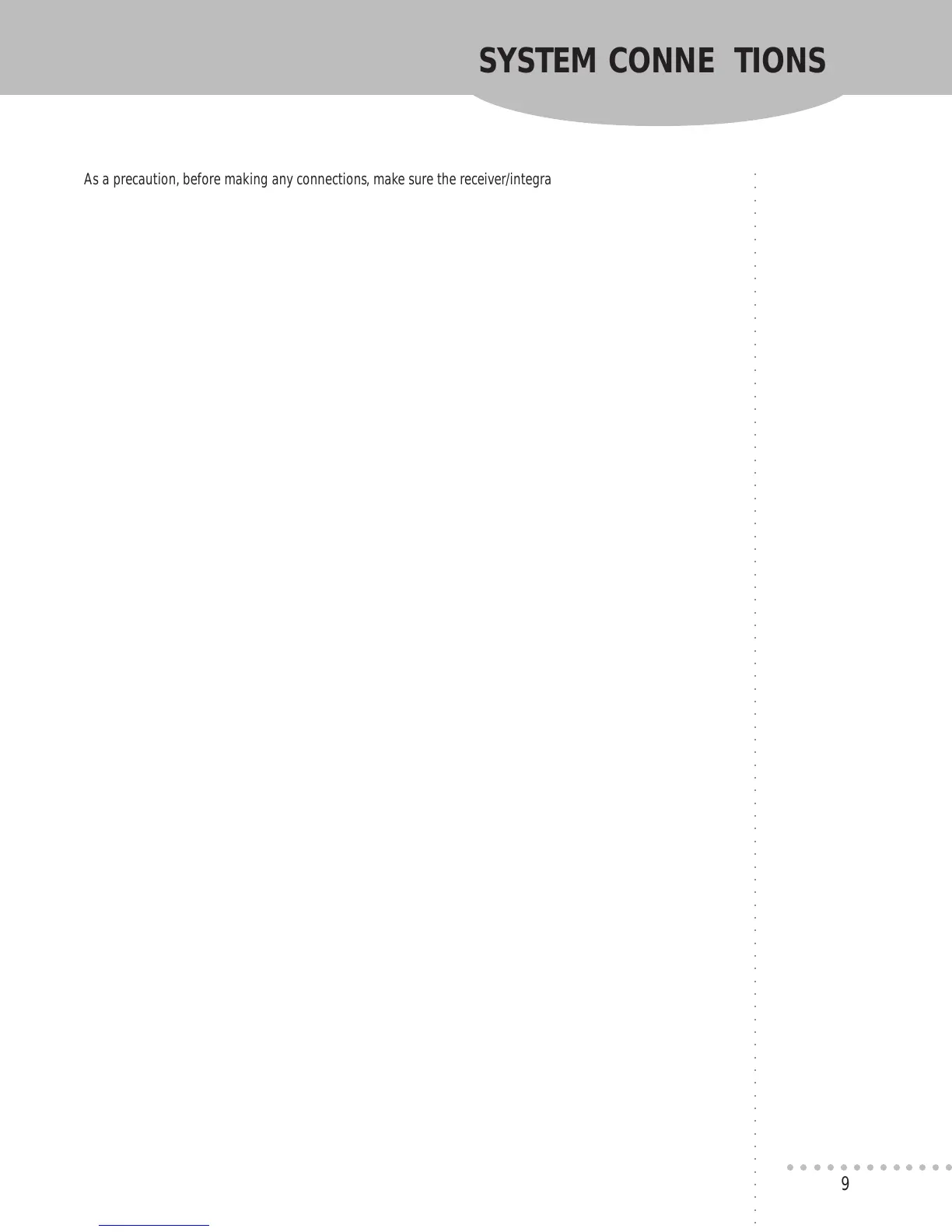 As a precaution, before making any connections, make sure the receiver/integrated amp and the DPA-P87