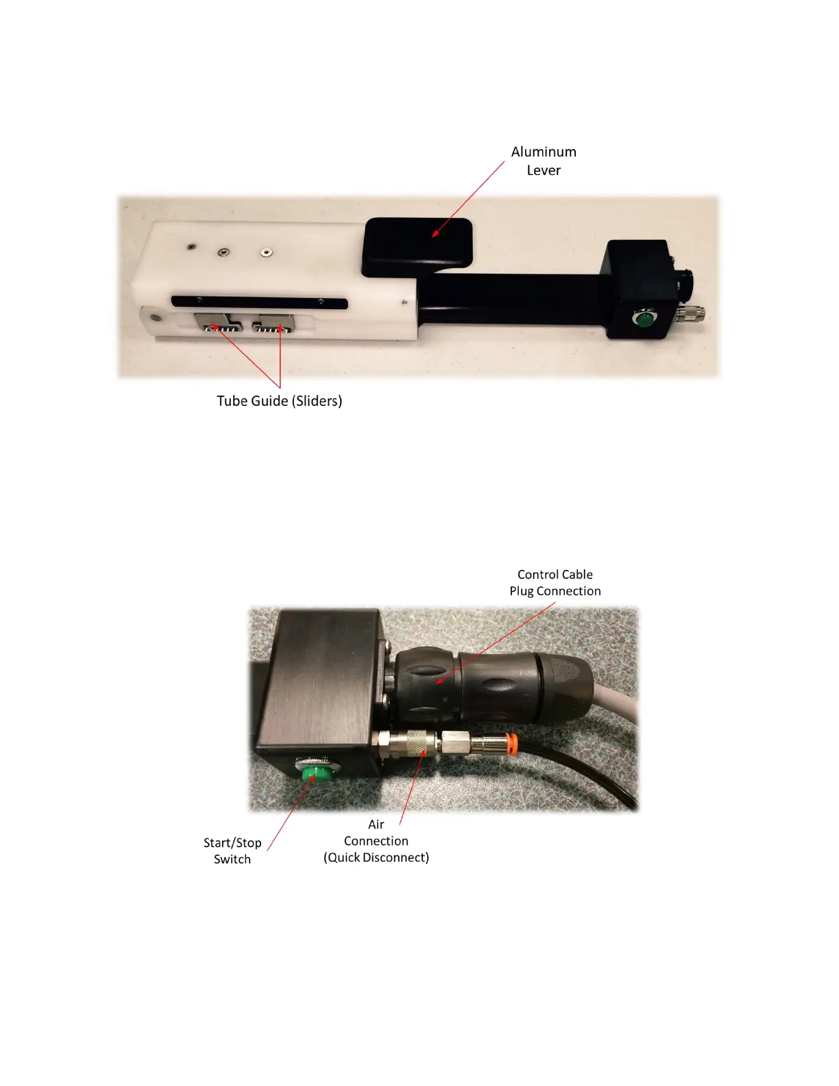 To open or close the sealing head, use the aluminum lever. See Figure 2.7.