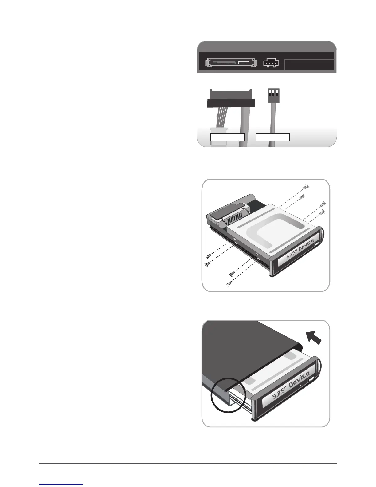 (5) Tighten the 4 screws on both sides of 5.25” device.