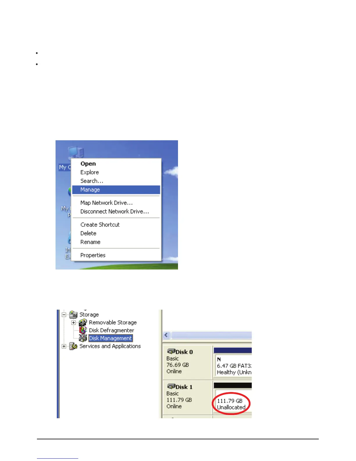 Select “Disk Management” and you will see your Hard Drive shown as “Unallocated”