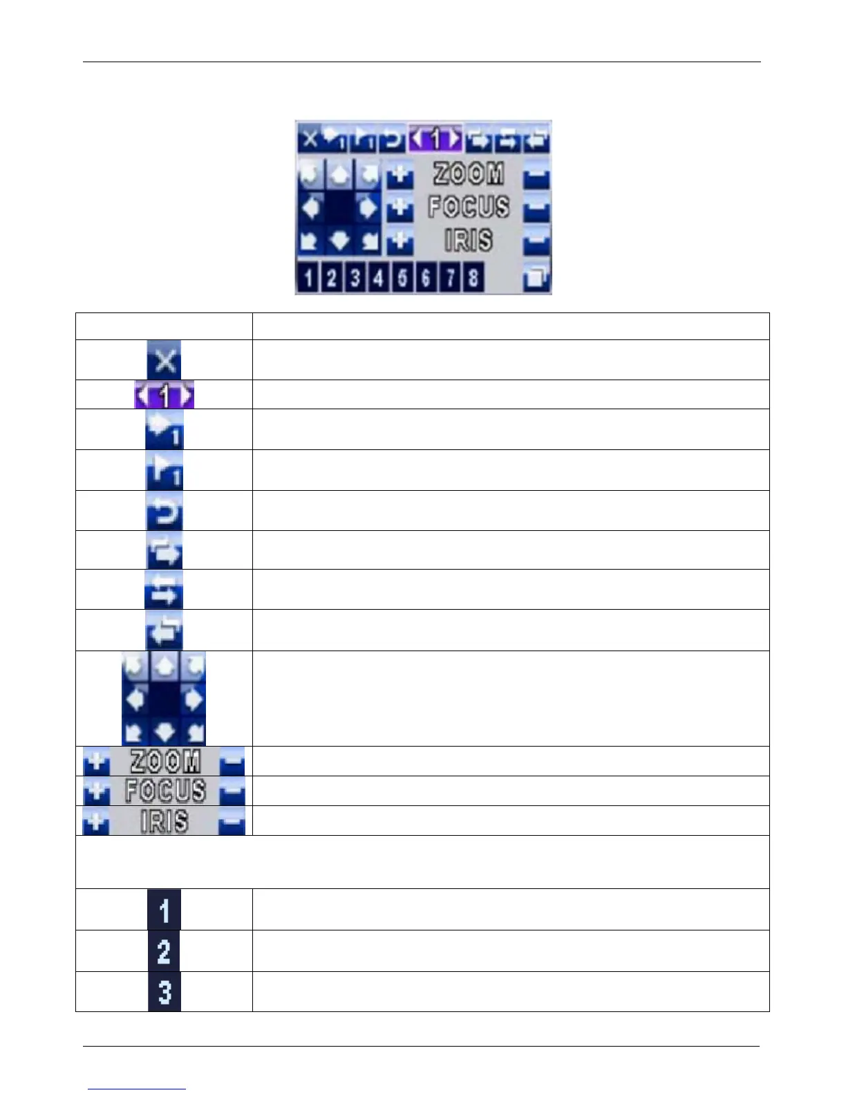 PTZ IRIS open, PTZ IRIS close.