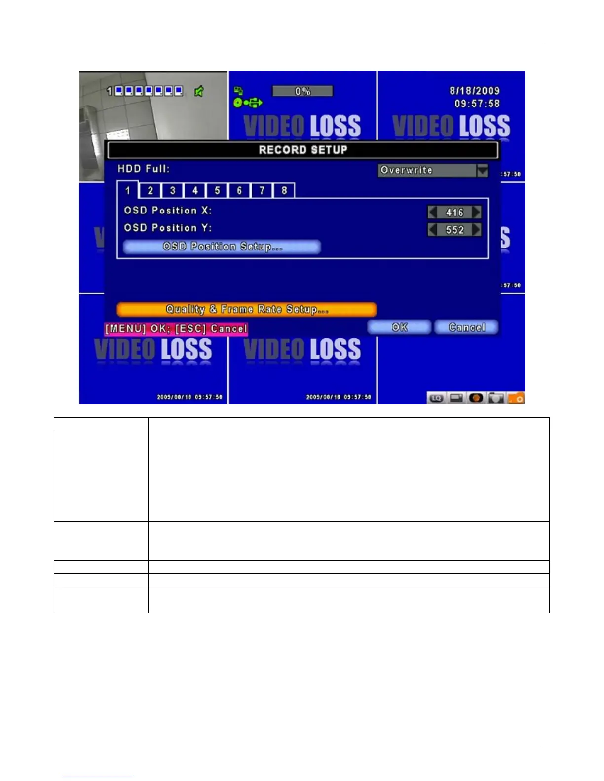 OSD position Y Set up OSD y axis