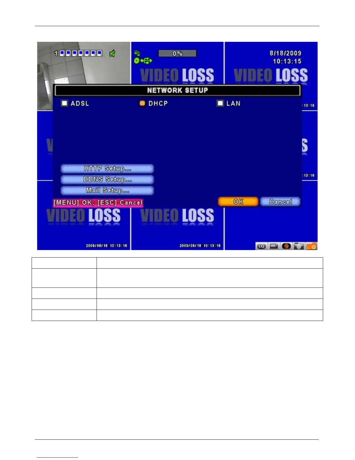 Setup mode for network connection: (DHCP