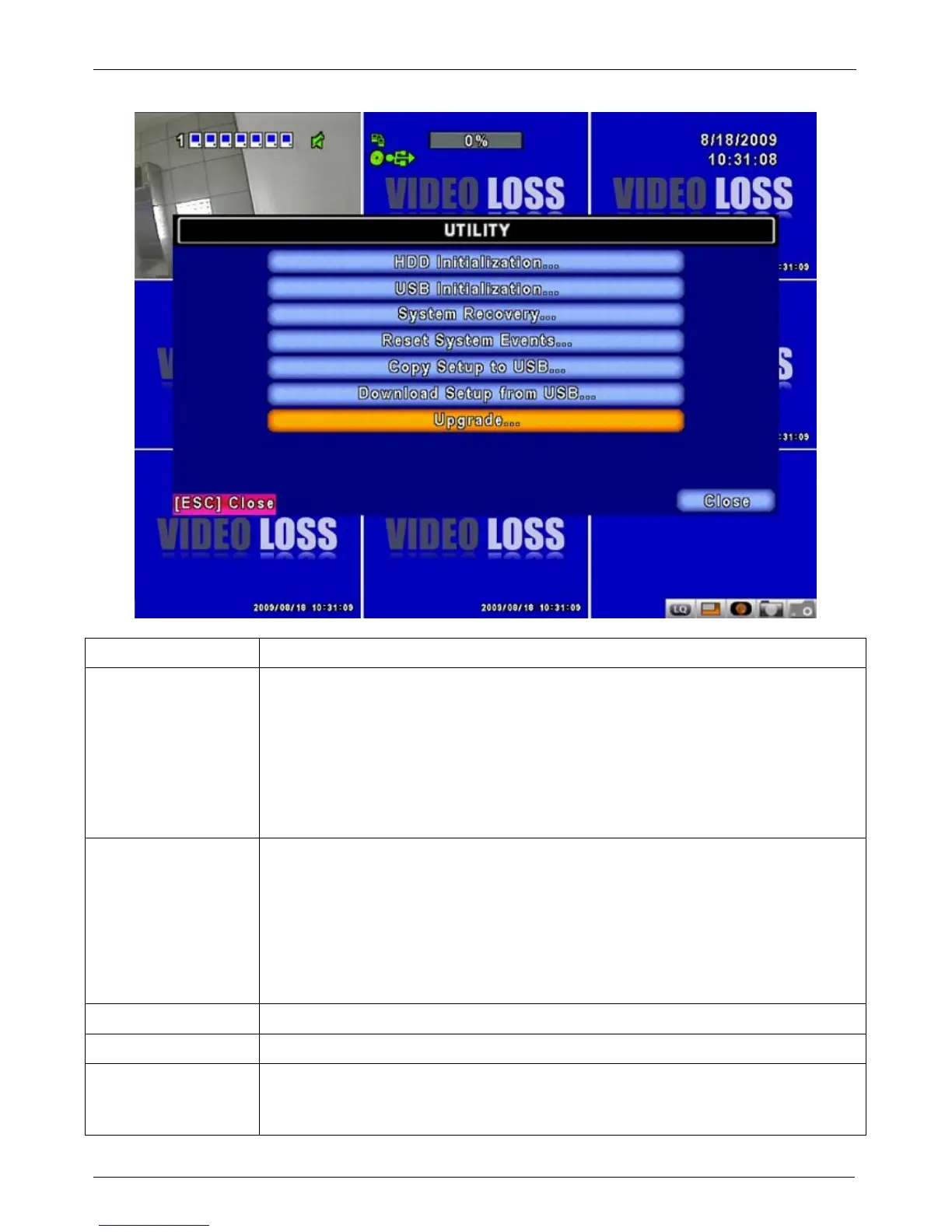 Select to enter hard disk initialization menu. Please stop recording before