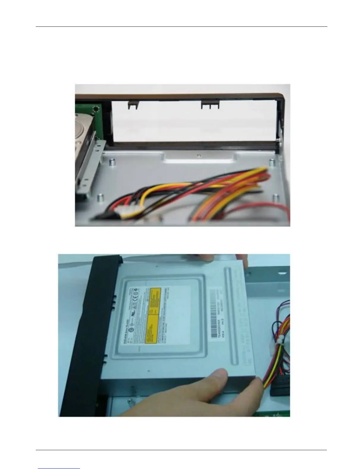 Step 1) Tháo bỏ hay giữ lại nắp đậy mặt trước đầu ghi DVR trong phần gắn ổ đĩa DVD-RW.