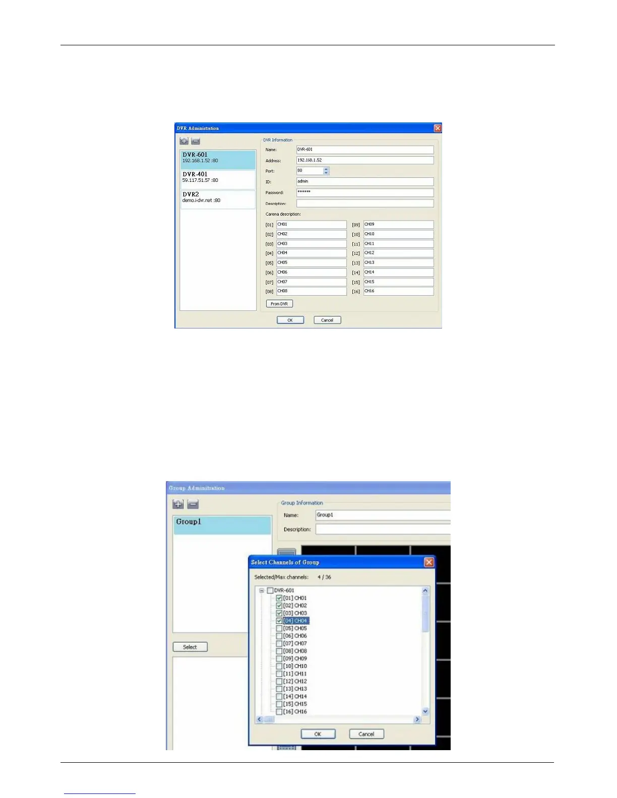 channels from different DVRs to be set in a group. This function allows you to monitor and manager