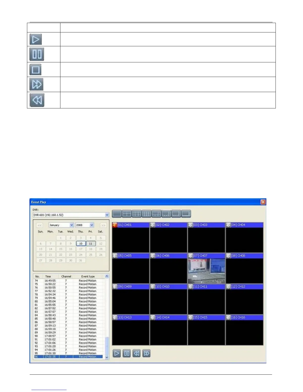 3. Double click an event and play back the images on the right : Kích đúp vào một sự kiện và phát lại những