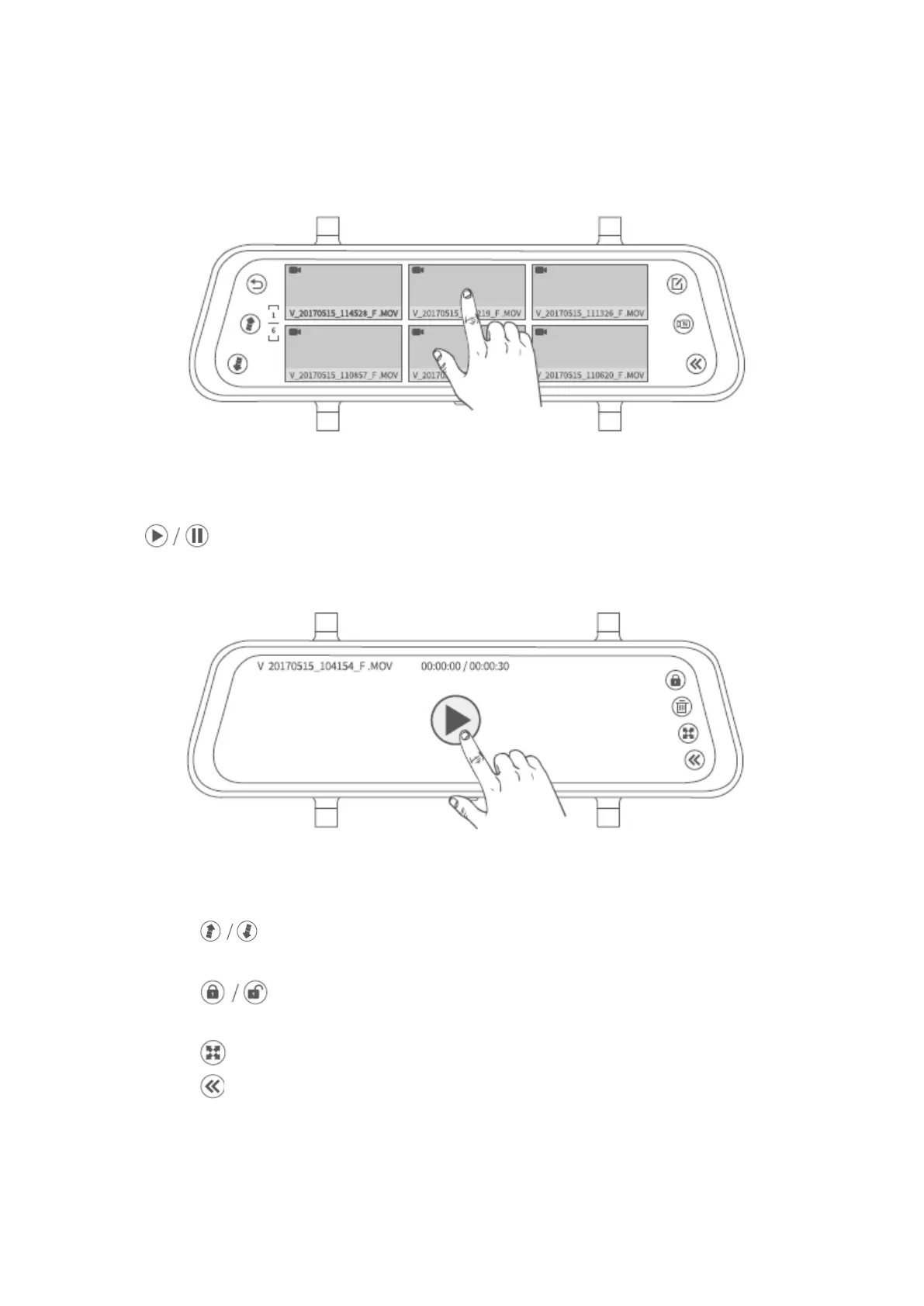 1. Tap to move the previous/next page to view all the normal video files