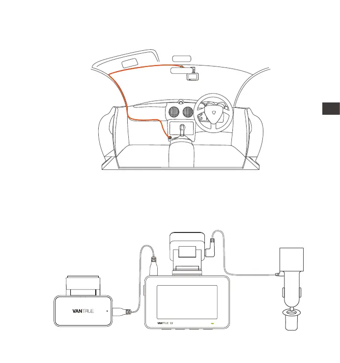 シガーソケットケーブルをフロントガラスの周りに配線してください。