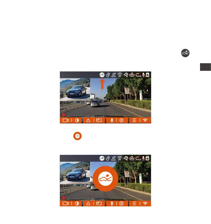 駐車モードに衝撃録画を選択すれば、画面の右下角に衝撃検知のマークが
