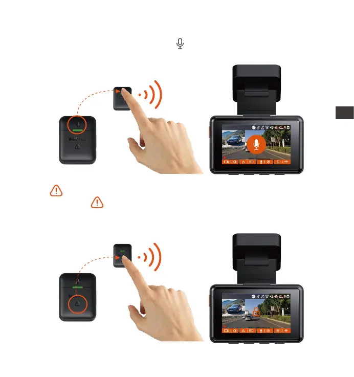 リモコンをドラレコに接続したら、ボタンを押して、録音をオン/オフにす