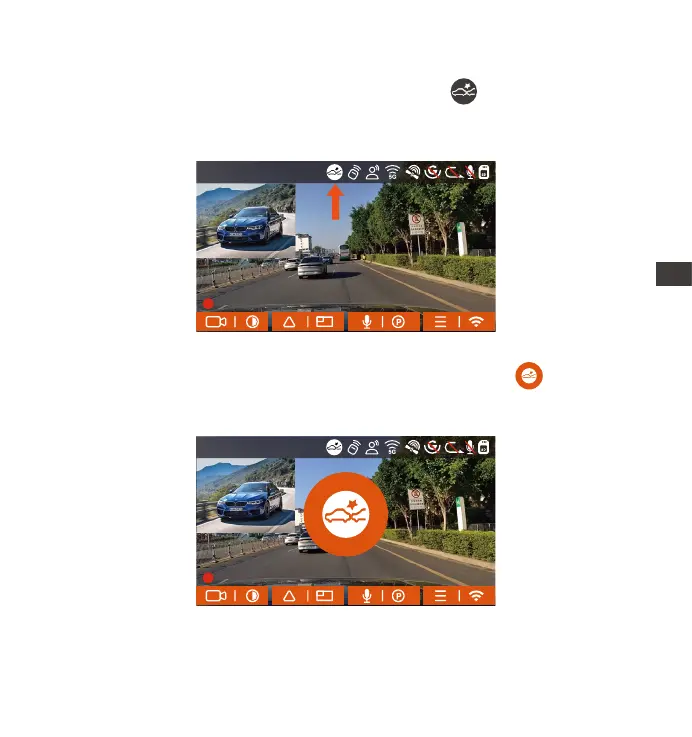 当碰撞侦测打开后,在录影界面会显示碰撞侦测图标 ,表示记录仪当前使用