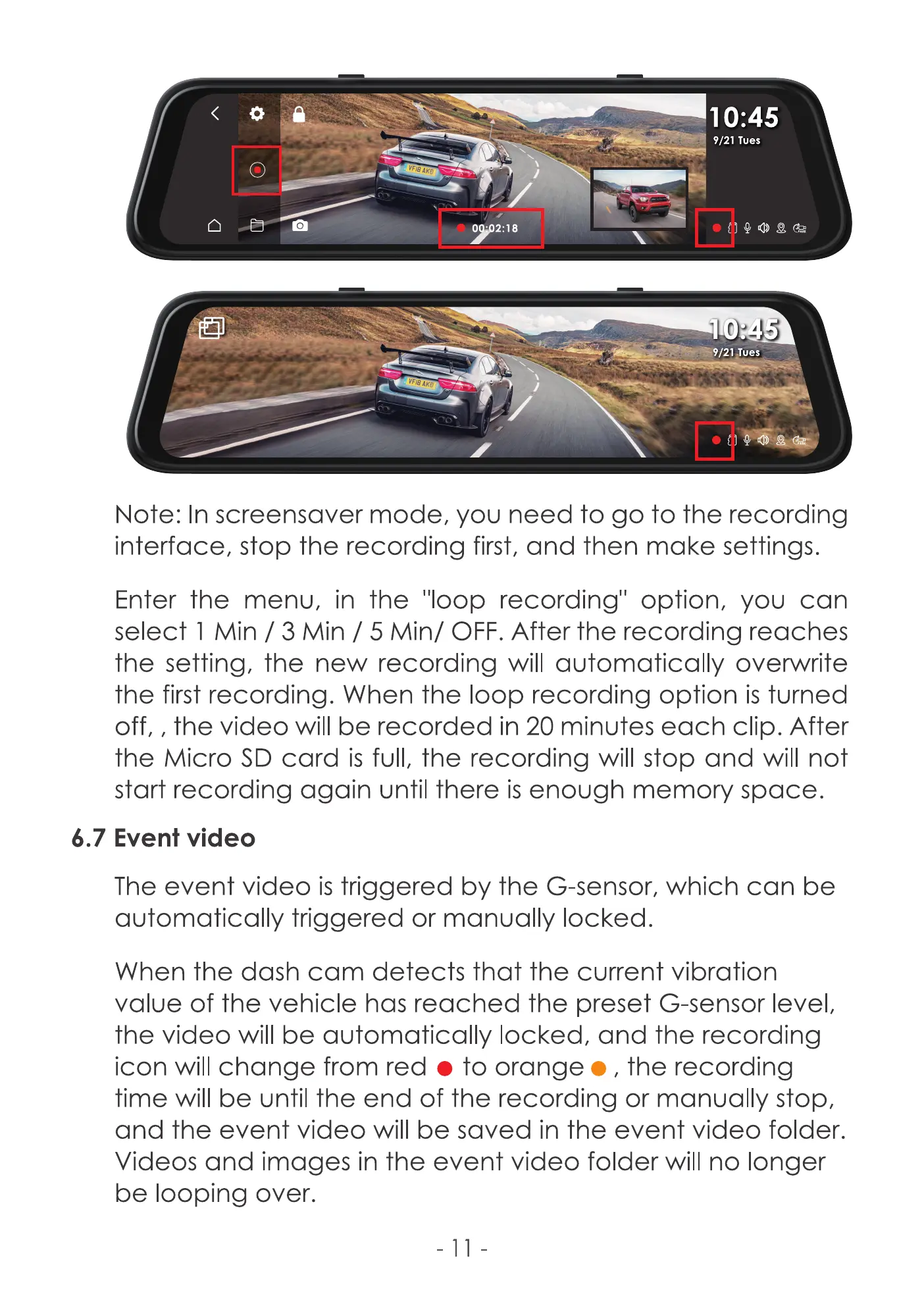 The event video is triggered by the G-sensor, which can be