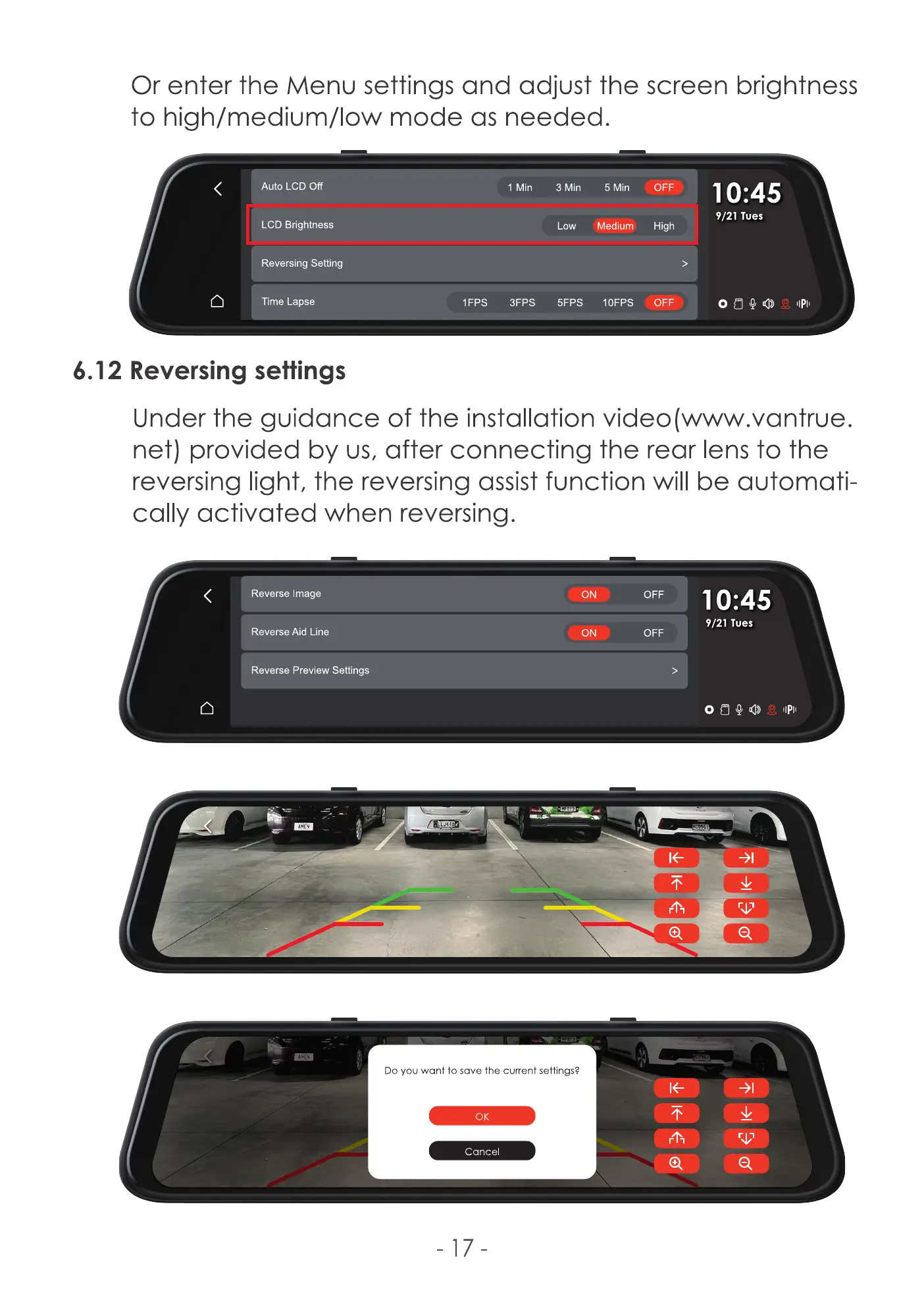 Under the guidance of the installation video(www.vantrue.