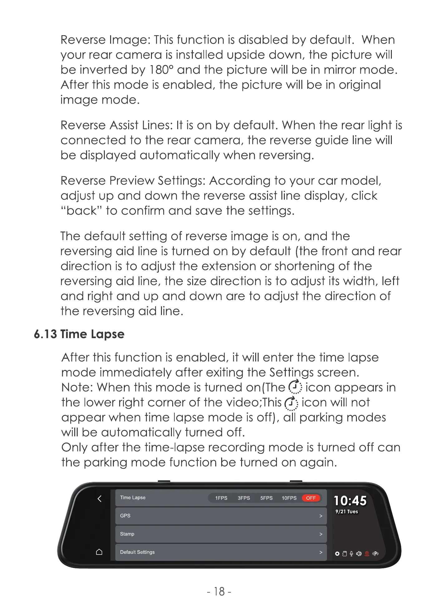 appear when time lapse mode isoff), dii parking modes