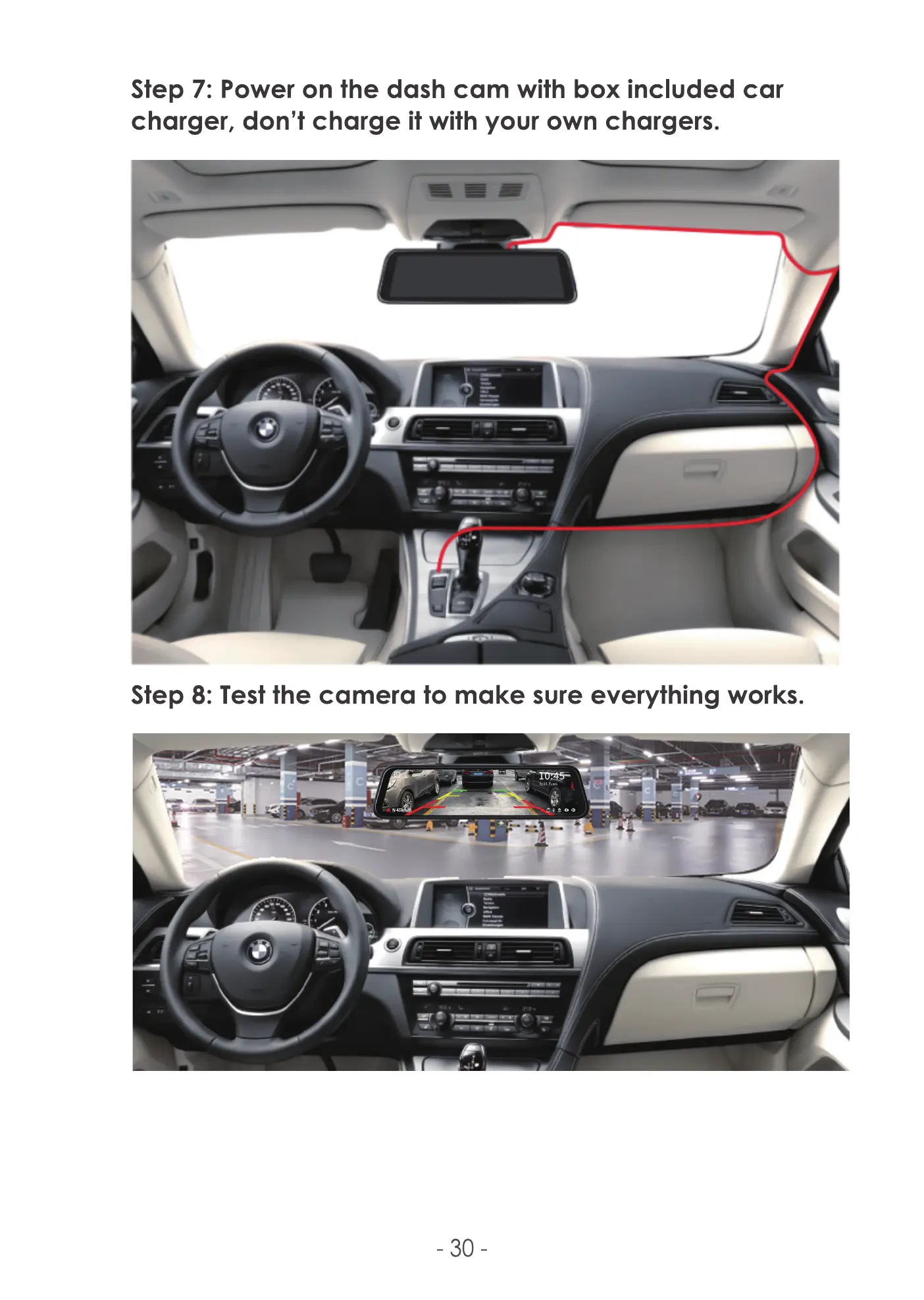 Step 7: Power on the dash cam with box included car