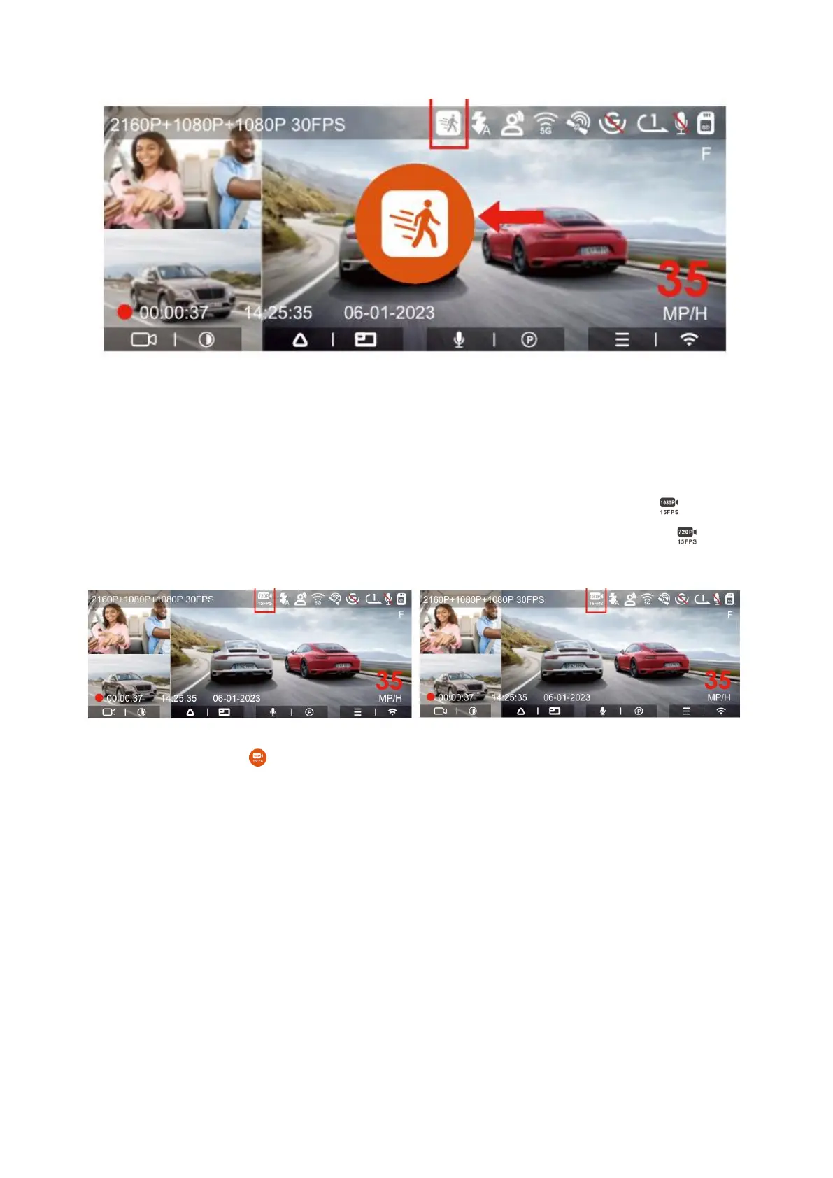a képernyő jobb alsó sarkában 1080P kiválasztás esetén, vagy 720P 15 FPS ikon ( )